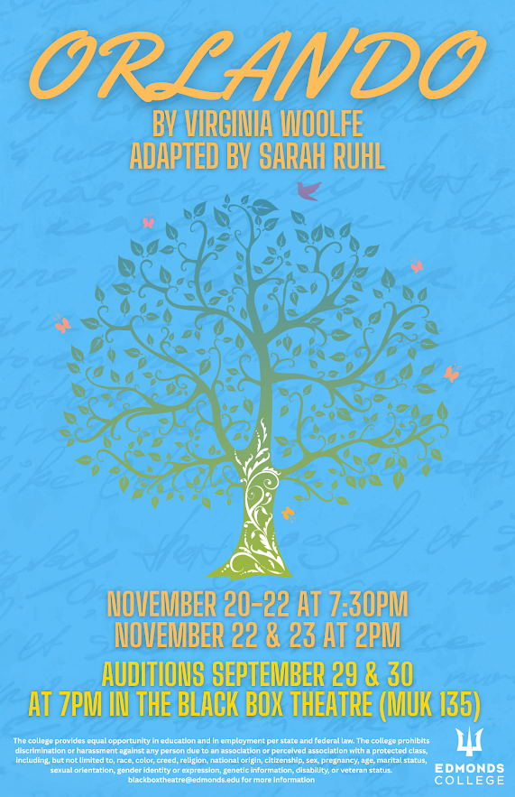 The Black Box Theatre at Edmonds Presents: Orlando by Sarah Ruhl, Adapted from the novel by Virginia Woolf Directed by Rachel Klem Performances are November 20th-22nd at 7:30 p.m. […]