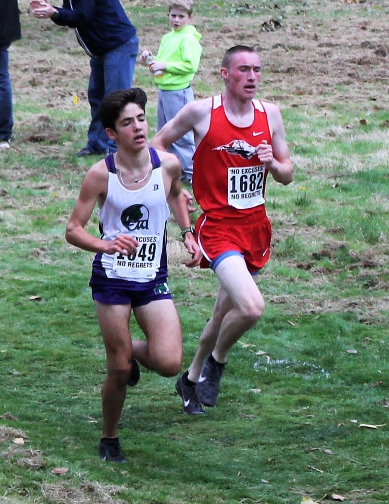 Lynnwood senior Micah Murphy edged out the Warriors’ Jacob Willcox by less than half-a-second to win the boys’ varsity race; the Hawks’ Alex Williams placed third.