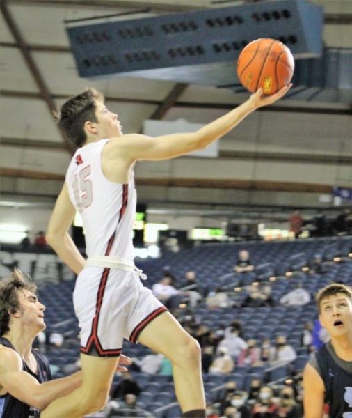Yes, I want to support MLTnews!In a 3A Boys State Basketball tournament elimination game on Friday, the Gig Harbor Tides took advantage of a downtrodden Mountlake Terrace Hawks squad and, for much of the matchup, looked to be heading for a high-scoring lopsided victory. But in the end it was the Hawks that would fly high, shaking off a discouraging loss less that 24 hours before, clamping down on the sharp-shooting Tides and snatching a dramatic come-from-behind win.