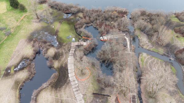 A partnership between the U.S. Army Corps of Engineers and the City of Mountlake Terrace, the project includes planting of more than 2,000 native trees and shrubs, redirecting Hall Creek to a new, more-stable channel, and constructing boardwalks, trails and footpaths.