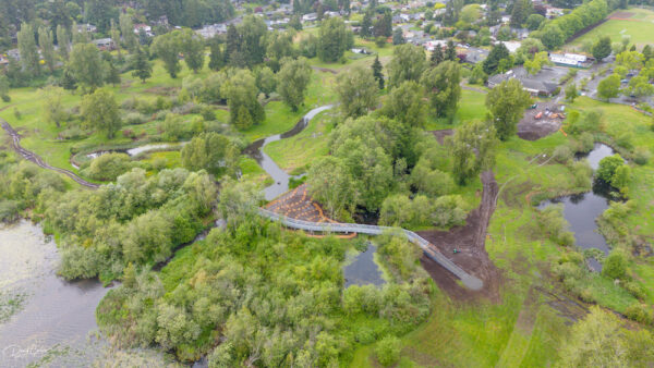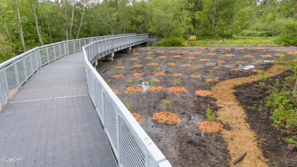 A partnership between the U.S. Army Corps of Engineers and the City of Mountlake Terrace, the project includes planting of more than 2,000 native trees and shrubs, redirecting Hall Creek to a new, more-stable channel, and constructing boardwalks, trails and footpaths.