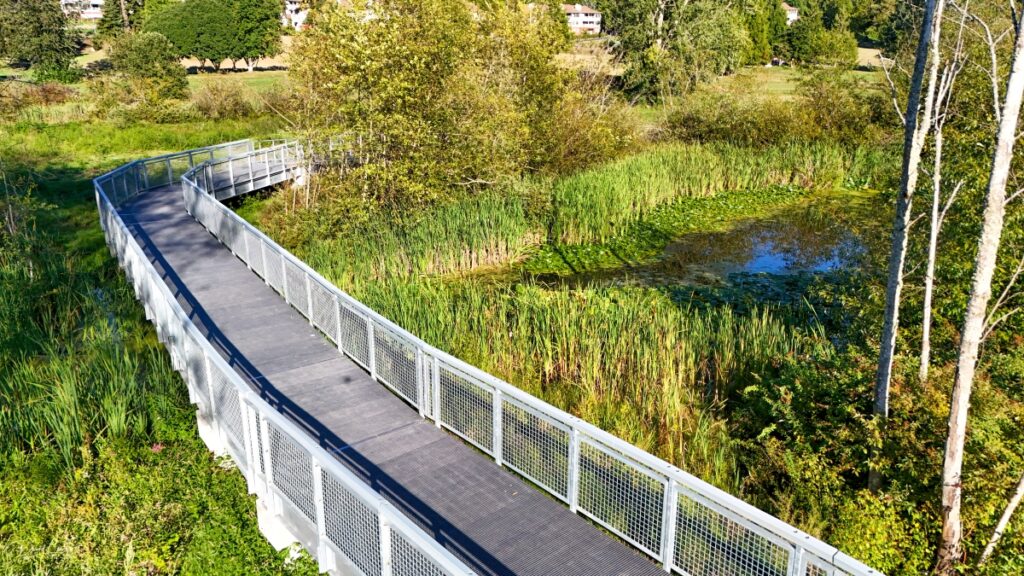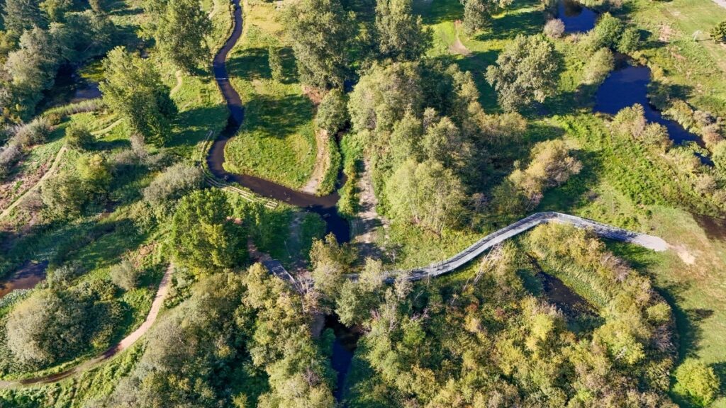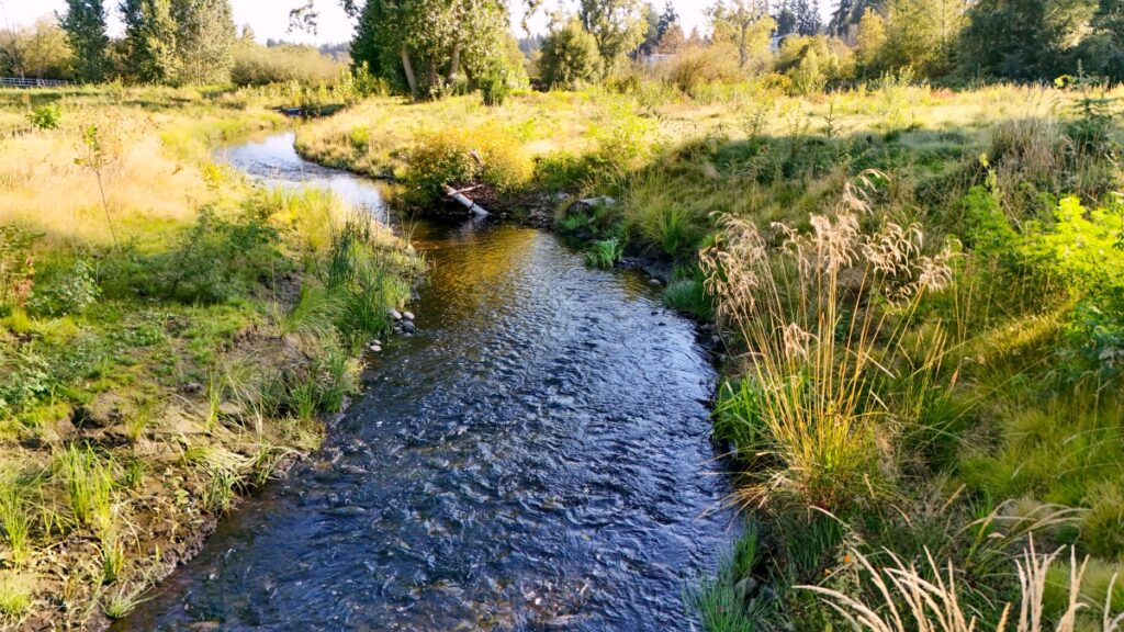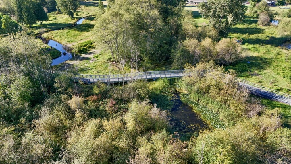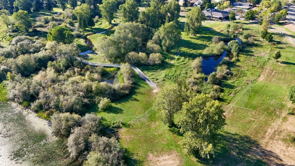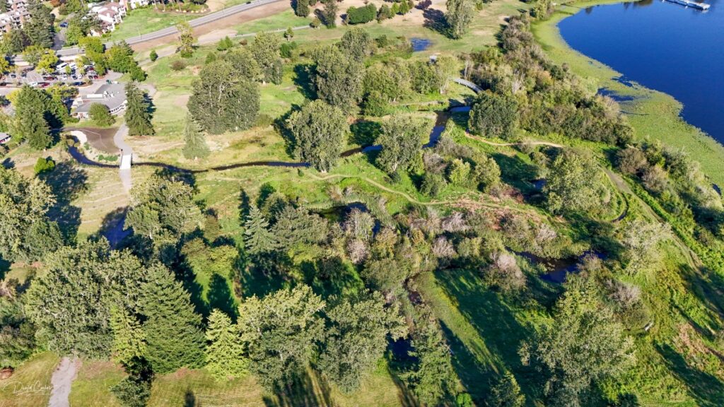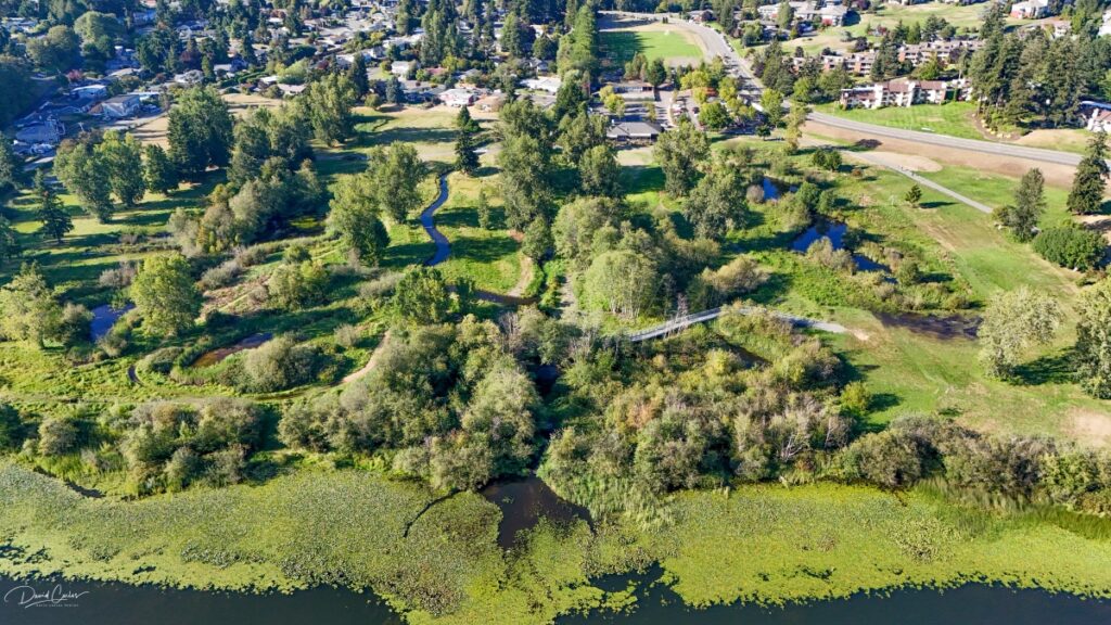 David Carlos takes monthly photographs and video via drone to capture the progress of the fish and wildlife restoration project at Ballinger Park. A partnership between the U.S. Army Corps of Engineers and the City of Mountlake Terrace, the project includes planting of more than 2,000 native trees and shrubs, redirecting Hall Creek to a new, more-stable channel, and constructing boardwalks, trails and footpaths.