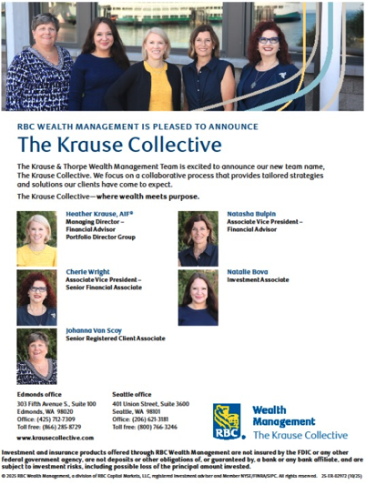 As the seasons are changing, we reflect on the changes in our own team this year, from well-earned retirement to new additions to our team. We are excited to announce to the My Edmonds News community that our name is changing to The Krause Collective. We hope the new name reflects our collaborative process and stewardship of helping our clients confidently navigate their financial lives, with purpose.