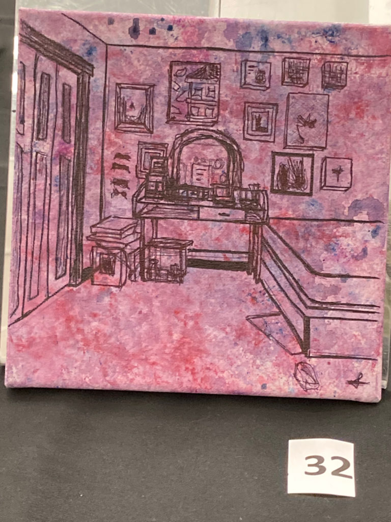Kosciuk had more than 30 pieces of her own art, most of which she created this year, in different mediums on display in the show’s curated room. She organized the works in sections to reflect different moods, such as serious and playful, that were informed by her personal experiences.