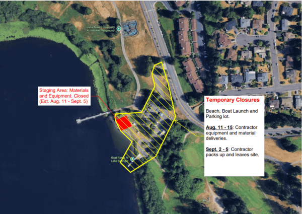 The City of Mountlake Terrace has scheduled temporary closures for the Lake Ballinger boat launch, beach, restrooms and parking lot in August and September, with the first closure set for Aug. 11-15.