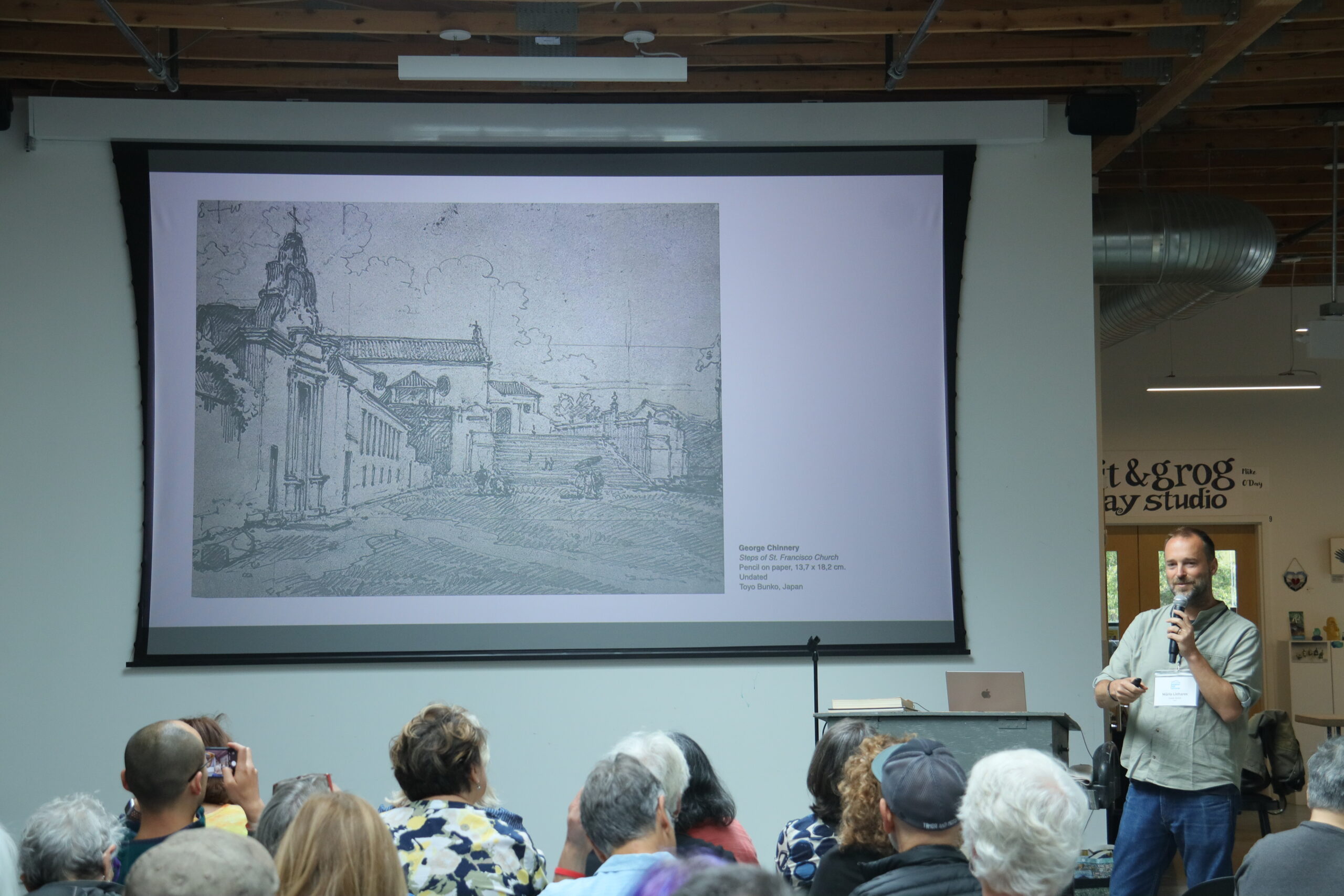 Art professor Mário Linhares presented Chinnery’s works at the third annual Sketcher Fest Edmonds Saturday at Graphite Art Center in downtown Edmonds – as part of the Artist Talk series. The event is dedicated to the art of travel and urban sketching, which was founded by Seattle artist and journalist Gabi Campanario.